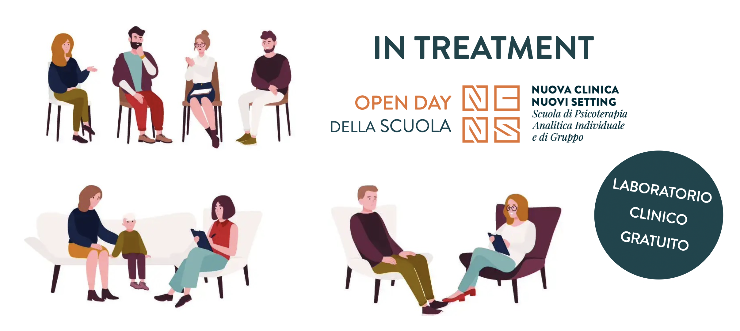 Il 20 settembre 2024 dalle 10:00 alle 13:30 si terrà l’OPEN DAY di Nuova Clinica Nuovi Setting | Scuola di Psicoterapia Analitica Individuale e di Gruppo, rivolto a studenti di psicologia, psicologi, psicoterapeuti e medici.