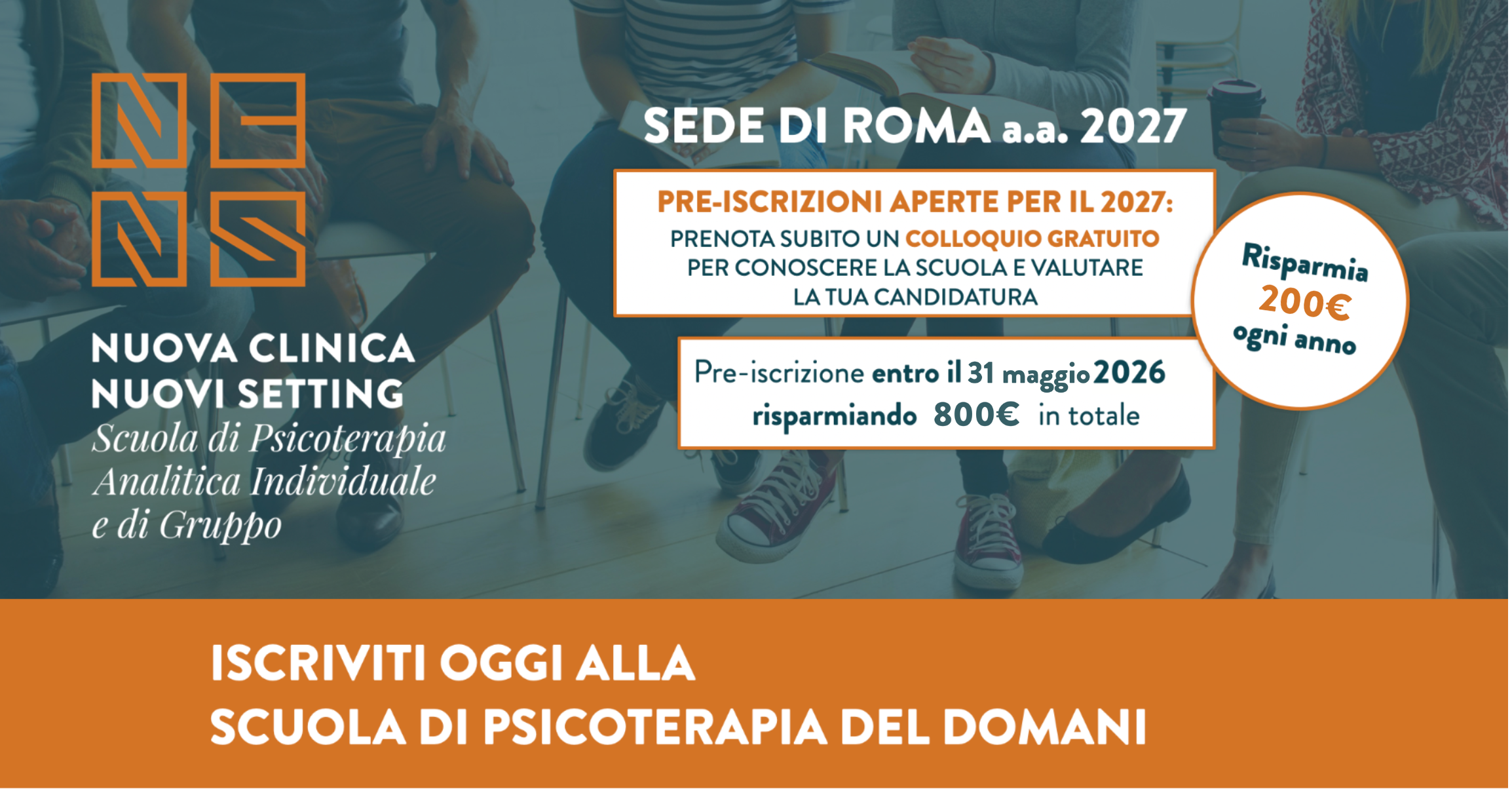 Nuova Clinica Nuovi Setting | Scuola di Psicoterapia Analitica Individuale e di Gruppo ha lo scopo di sviluppare competenze nell’esperienza clinica della psicoterapia individuale e di gruppo, attraverso un percorso teorico e pratico per intervenire sulle complesse interazioni che legano corpo, mente e ambiente nel soggetto ipermoderno.